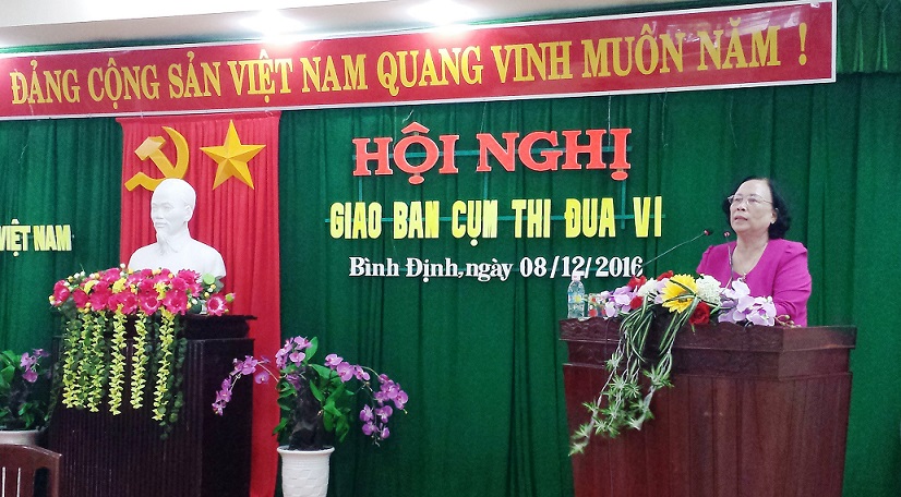 Hội nghị giao ban Hội NCT Cụm thi đua số VI năm 2016 các tỉnh, thành phố duyên hải miền Trung: Quảng Nam, Quảng Ngãi, Bình Định, Phú Yên, Khánh Hòa, Ninh Thuận và TP.Đà Nẵng được tổ chức ngày 08/12/2016 tại TP Quy Nhơn, tỉnh Bình Định. Chủ tịch Trung ương Hội NCT Việt Nam Phạm Thị Hải Chuyền và lãnh đạo các sở, ban, ngành, MTTQ tỉnh Bình Định đến dự hội nghị.