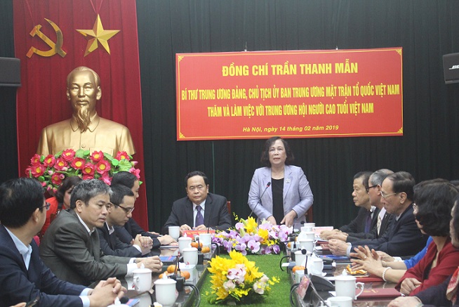 Phát biểu tại buổi làm việc, đồng chí Trần Thanh Mẫn ghi nhận, biểu dương những kết quả Hội NCT Việt Nam đạt được thời gian qua; đồng thời khẳng định: NCT là lực lượng có vai trò, vị trí hết sức quan trọng, đặc biệt trong thực hiện đường lối chủ trương, chính sách của Đảng, pháp luật của Nhà nước. Trong những năm qua, Đảng, Nhà nước quan tâm, coi trọng, chăm sóc NCT để NCT được chăm sóc trong điều kiện tốt nhất và tôn vinh, phát huy uy tín, nhiệt huyết, kinh nghiệm đóng góp của NCT vào sự nghiệp xây dựng và bảo vệ Tổ quốc. Những kết quả hoạt động cho thấy Hội NCT thực hiện nghiêm túc các nghị quyết của Đảng; triển khai tích cực các phong trào, cuộc vận động do Ủy ban Mặt trận Tổ quốc Việt Nam phát động. Năm 2019 là năm thứ tư thực hiện Nghị quyết XII của Đảng, Đại hội Mặt trận các cấp, Chủ tịch Trần Thanh Mẫn mong muốn Hội NCT Việt Nam với tư cách là thành viên Mặt trận Tổ quốc Việt Nam tiếp tục tham gia tích cực hiệu quả; tuyên truyền rộng rãi vị thế, vai trò của tổ chức Hội và NCT trong xã hội; chăm lo bảo vệ quyền và lợi ích hợp pháp cho NCT, tập hợp đoàn kết hội viên; giáo dục, nêu gương cho thế hệ trẻ, xây dựng gia đình văn hóa, hạnh phúc; tham gia các chương trình phối hợp, phát huy kinh nghiệm, trí tuệ phát triển kinh tế, xóa đói giảm nghèo; tích cực tham gia vào các tổ chức quốc tế, các hoạt động đối ngoại nhân dân vì lợi ích của NCT.