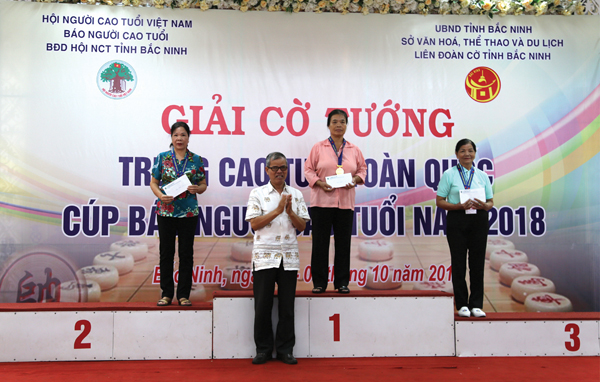Sau 3 ngày tranh tài sôi nổi, hấp dẫn, kịch tính, chiều 5/10, Giải Cờ tướng trung cao tuổi toàn quốc Cúp Báo Người cao tuổi năm 2018 đã thành công tốt đẹp. Dự lễ bế mạc có TS Đàm Hữu Đắc, Phó Chủ tịch Thường trực Trung ương Hội NCT Việt Nam; ông Nguyễn Văn Phong, Phó Chủ tịch UBND tỉnh Bắc Ninh; ông Lưu Đức Hải, Phó Chủ tịch Liên đoàn cờ tướng Việt Nam; bà Lưu Thị Hường và ông Đặng Tài Tính, Ủy viên Thường vụ Trung ương Hội NCT Việt Nam và đại biểu các sở, ban, ngành tỉnh Bắc Ninh; Hội NCT, Ban đại diện Hội NCT các tỉnh, thành trong cả nước.