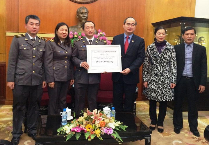 Năm 2014 đã xảy sự kiện biển Đông, làm cho nhân dân lo lắng và ai ai cũng muốn thể hiện tình cảm yêu nước của mình. Vai trò của Mặt trận lúc này là tuyên truyền cho nhân dân hiểu đúng tình hình, đồng thời khuyến khích tình cảm của đồng bào đối với ngư dân, kiểm ngư, cảnh sát biển và các chiến sĩ đang ngày đêm bảo vệ những vùng biển trời thiêng liêng của Tổ quốc. Trong năm qua, Mặt trận đã kêu gọi và vận động hơn 12 tỷ đồng ủng hộ biển đảo. Toàn bộ số tiền này đã được chuyển giao cho các địa phương để phân bổ về các địa chỉ cụ thể. Có thể nói, 12 tỷ đồng này là chưa đủ nhưng qua sự kiện này, chúng ta đã củng cố tinh thần đoàn kết toàn dân tộc, lòng yêu nước và thể hiện tình cảm cũng như ứng xử hợp lý.