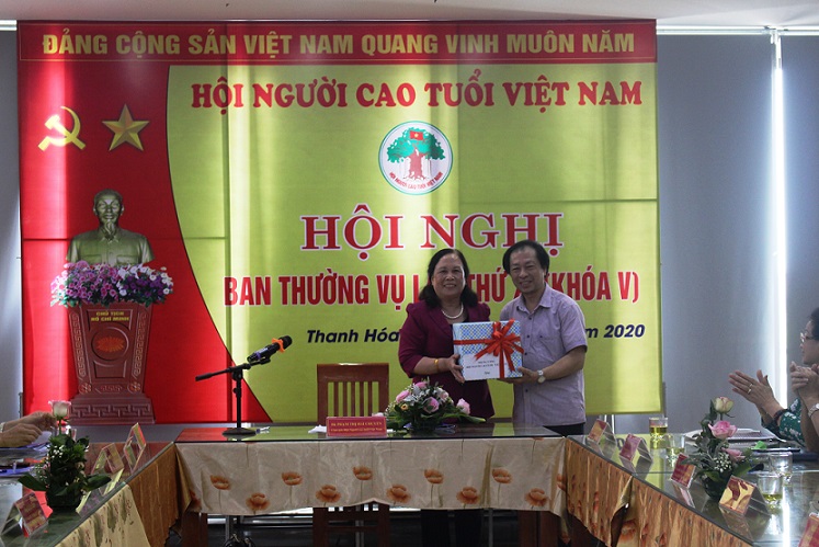 Chủ tịch Trung ương Hội NCT Việt Nam gửi lời cảm ơn chân thành tới Hội NCT tỉnh Thanh Hóa đã tạo điều kiện cho Hội nghị tổ chức thành công tốt đẹp. Trong dịp này, thay mặt Ban Thường vụ Trung ương Hội NCT Việt Nam Chủ tịch Phạm Thị Hải Chuyền tặng quà lưu niệm Hội NCT tỉnh Thanh Hóa.