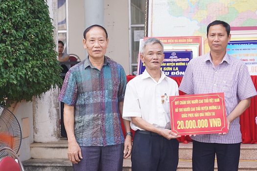 Ngày 27 tháng 8 vừa qua, Ban Đại diện Hội NCT tỉnh Sơn La đã đến thăm hỏi, động viên và trao tặng số tiền 20 triệu đồng từ Quỹ chăm sóc NCT Trung ương Hội NCT Việt Nam. Số tiền được trao tận tay 40 hộ gia đình có NCT bị thiệt hại, mỗi hộ được hỗ trợ 500.000đ.