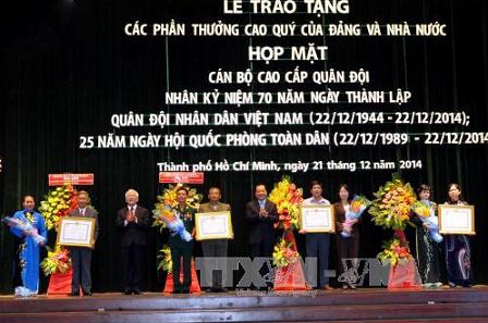 Nhân kỷ niệm 70 năm thành lập Quân đội Nhân dân Việt Nam (22/12/1944 - 22/12/2014), 25 năm Ngày hội Quốc phòng toàn dân (22/12/1944 – 22/12/2014), chiều 21/12, Thành ủy, HĐND, UBND, Uỷ ban Mặt trận Tổ quốc Việt Nam Thành phố Hồ Chí Minh đã tổ chức buổi họp mặt các tướng lĩnh, cán bộ cao cấp quân đội đã nghỉ hưu trên địa bàn thành phố.