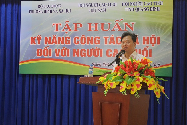 Phát biểu chỉ đạo lớp tập huấn, TS Đàm Hữu Đắc, Phó Chủ tịch Thường trực Trung ương Hội nhấn mạnh: Tập huấn lần này nhằm cung cấp, nâng cao kiến thức, phương pháp, kĩ năng cơ bản công tác xã hội đối với NCT cho đội ngũ cán bộ Hội NCT các cấp tỉnh Quảng Bình. Đây là nội dung mới và rất thiết thực đối với NCT nói chung và người làm công tác Hội nói riêng. Hoạt động Hội NCT có thể coi là một nghề công tác xã hội và cần có phương pháp, kiến thức cơ bản qua đó vận động NCT đóng góp nhiều hơn cho xã hội, tích cực tham gia vào các chủ trương, chính sách của Đảng, Nhà nước, của Hội. Các cấp Hội NCT trong tỉnh nâng cao nhận thức, tiếp tục thực hiện tốt công tác chăm sóc, phát huy vai trò NCT và phát huy những tiềm năng, thế mạnh, kinh nghiệm của NCT.