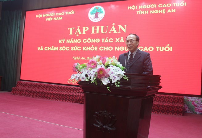 Ngày 16/12, tại TP Vinh, Trung ương Hội NCT Việt Nam phối hợp với Hội NCT tỉnh Nghệ An tổ chức tập huấn kỹ năng công tác xã hội và chăm sóc sức khỏe NCT cho 100 cán bộ Hội NCT các cấp tỉnh Nghệ An. Đồng chí Nguyễn Hòa Bình, Phó Chủ tịch Hội NCT Việt Nam chủ trì lớp tập huấn. PGS.TS.BS. Đại tá Hồ Bá Do, Giảng viên cao cấp Học viện Quân Y, Phó Chủ tịch Hội Y học cổ truyền Việt Nam; Ths. Nguyễn Kim Loan, nguyên Trưởng bộ môn Công tác xã hội chuyên biệt, Khoa Công tác xã hội, Trường Đại học Lao động xã hội làm giảng viên lớp tập huấn.