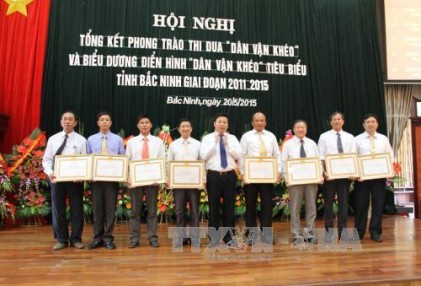 Ngày 20/5, tỉnh Bắc Ninh tổ chức tổng kết phong trào thi đua "Dân vận khéo". 85 tập thể, cá nhân có thành tích xuất sắc trong phong trào thi đua của tỉnh giai đoạn 2011-2015 đã được Tỉnh ủy, UBND tỉnh, Ban chỉ đạo phong trào thi đua "Dân vận khéo" của tỉnh, Ban Dân vận Tỉnh ủy biểu dương, khen thưởng.