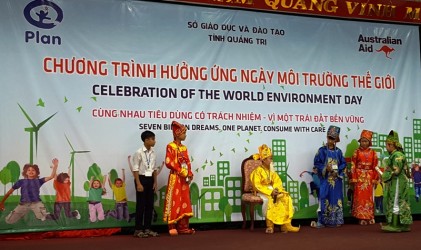 Hưởng ướng Ngày Môi trường Thế giới, ngày 5/6, tại TP Đông Hà (Quảng Trị), Vùng dự án Plan tỉnh Quảng Trị phối hợp với Sở Giáo dục và Đào tạo tỉnh Quảng Trị tổ chức Diễn đàn Thanh thiếu niên thích ứng với biến đổi khí hậu và môi trường theo chủ đề chính thức của Ngày Môi trường Thế giới 2015 “Cùng nhau tiêu dùng có trách nhiệm – Vì một trái đất bền vững”.